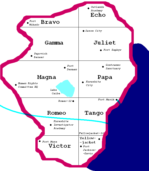 Kurashita is divided by population into ten regions: Bravo, Echo,